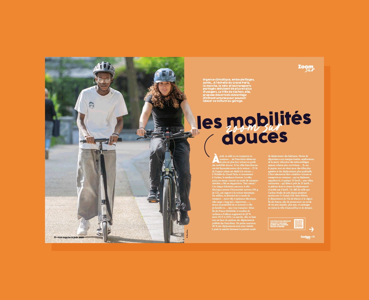 Refonte du magazine de la Ville de Cachan. Un nouveau bloc-marque, un chemin de fer et un rubricage retravaillés accompagnés d’une identité graphique moderne, colorée et épurée.